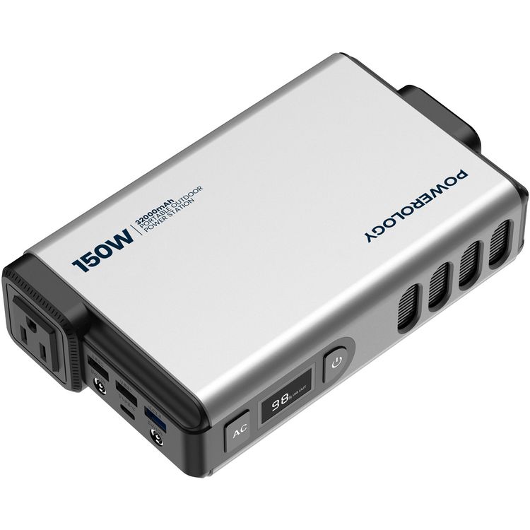 Powerology 32000mAh Mini Power Station with 150W AC Output, Advanced Cooling Technology, PD 100W, Laptop Charger - Gray