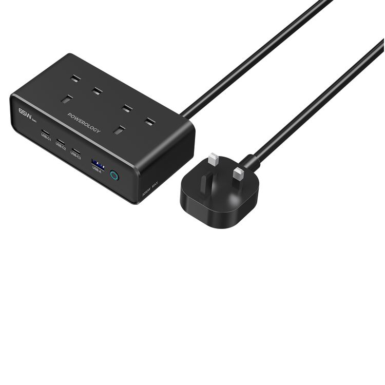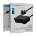 Powerology Omnix Desktop Charging Station with Dual AC Outlets, USB-A & 3 USB-C Ports, 3250W Max Power, 65W DC Output, UK 3-Pin Plug with 1.5m Length, GaN Technology, Built-in Safety Features - Black