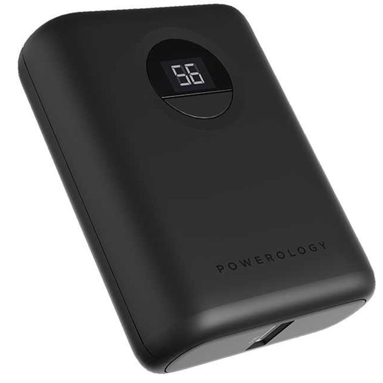 Powerology Ultra-Compact PD 10000mAh Power Bank with Digital Display, 20W Power Delivery, USB-A QC 18W, 0%-60% Charge in 35 Minutes, PowerDash 3.0, Lithium-ion Battery, Lightweight & Compact - Black