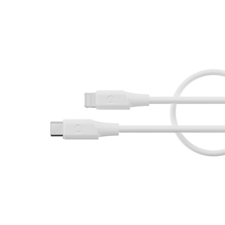 Powerology Power Sync Flex USB-C to Lightning Cable with 2m Length, 10000 Bends Lifespan, Fast Charge & Data Transfer, Molded TPE Material, 480Mbps Data Transfer Speed, 30W Power Delivery - White
