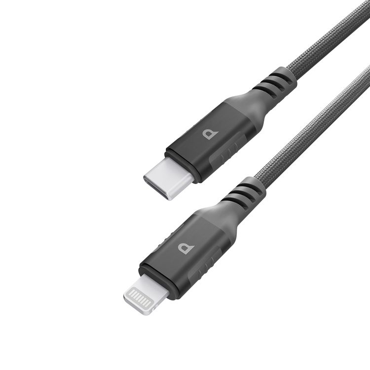 Powerology Power Sync Weave USB-C to Lightning Cable with 1.2m Length, 20000 Bends Lifespan, Braided Nylon Material, Tangle-Free Design, Fast Charge & Data Transfer, 30W Power Delivery - Dark Gray