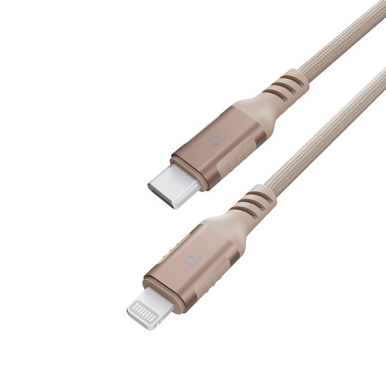 Powerology Power Sync Weave USB-C to Lightning Cable with 1.2m Length, 20000 Bends Lifespan, Braided Nylon Material, Tangle-Free Design, Fast Charge & Data Transfer, 30W Power Delivery - Desert Titanium