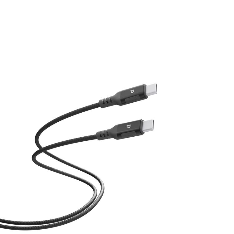 Powerology Power Sync Weave USB-C to USB-C Cable with 2m Length, 20000 Bends Lifespan, Braided Nylon Material, Tangle-Free Design, Fast Charge & Data Transfer, 100W Power Delivery, 4K Video Output, 5 Gbps Transfer Speed - Dark Gray