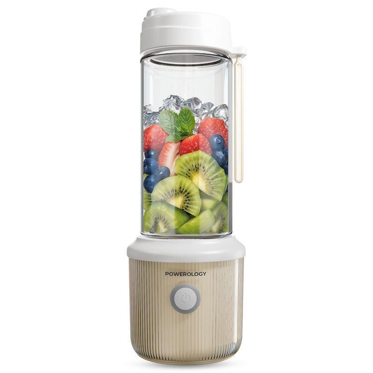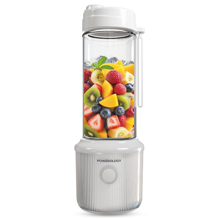 Powerology Press & Refresh Portable Blender with 450mL Capacity, 126W Motor Power, Sharp Steel Blades, Leakproof, BPA-Free Material, 16500RPM Motor Speed - White