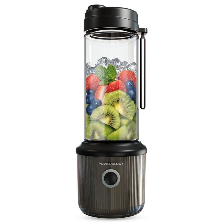 Powerology Press & Refresh Portable Blender with 450mL Capacity, 126W Motor Power, Sharp Steel Blades, Leakproof, BPA-Free Material, 16500RPM Motor Speed - Black