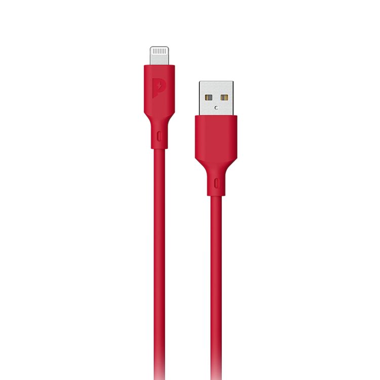 Powerology USB-A to Lightning Cable, 2.4 Charging Current, PVC Fire-Resistant Material, 1.2m Cable Length, More than 5000 Bends Lifespan, Fast Charge & Data Sync - Red