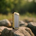 Powerology Solara 10000mAh Solar Power Bank with Built-in Safeguards, Dual LED Panels, Simultaneous Charging, Solar Charging, 3 Light Modes, IP65 Water Resistance Level, PD 20W, 1200 Lumens Maximum Brightness, QC 22.5W, USB-A to USB-C Cable, Solar Charging - Khaki