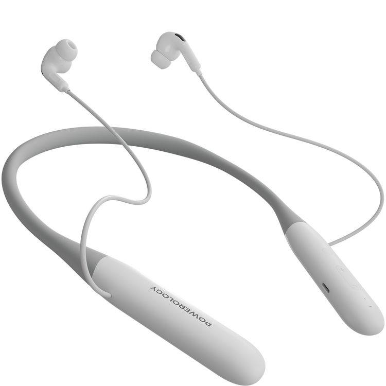 Powerology ToneFlex ENC Wireless Neckband Earphones with Immersive Hi-Fi Audio, Up to 90 Hours Talk Time & Up to 100 Hours Play Time, 850mAh Battery, 13mm Speaker Size, Seamless Dual-Mode, Secure-Fit Design - White