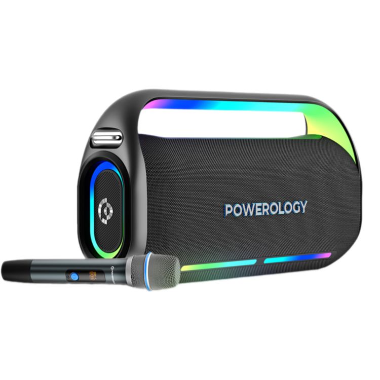Powerology TWS Karaoke Speaker 150W with Mic and Remote, Bluetooth Version 5.0 + DSP, 18000mAh Battery Capacity, 12 Hours Working Time, 7.5 Hours Charging Time - Black