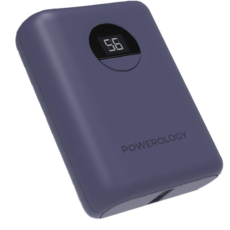 Powerology Ultra-Compact PD 10000mAh Power Bank with Digital Display, 20W Power Delivery, USB-A QC 18W, 0%-60% Charge in 35 Minutes, PowerDash 3.0, Lithium-ion Battery, Lightweight & Compact - Purple