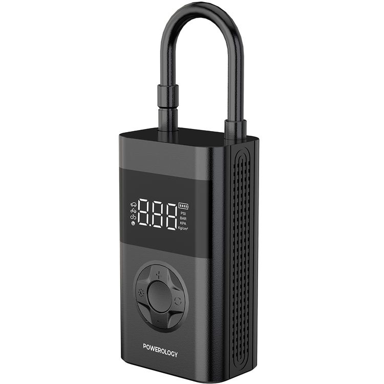 Powerology PPO55 Ultra Portable Air Compressor Powerbank, 4000mAh, 70W, 20 minutes Continuous Inflation, 20-23L/Min - Black