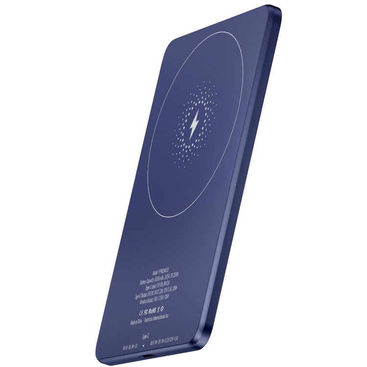 Powerology Ultra-Thin 5000mAh MagSafe Power Bank, Portable & Lightweight, Efficient Heat Dissipation, Aluminum Housing, Built-in Safeguards, Strong Magnet - Blue