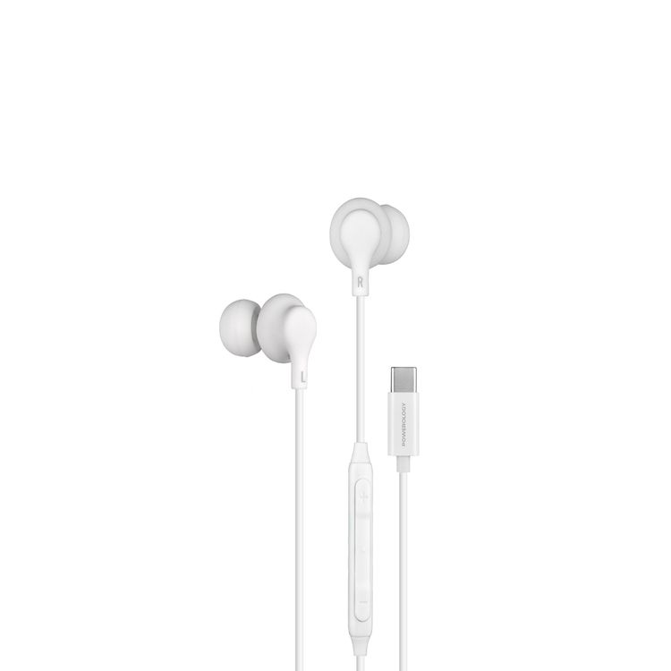Powerology USB-C In-Ear Stereo Earphones with Intuitive In-Line Control Buttons, 10mm Driver Unit, HD Sound Quality, 5mW Power, Voice Assistant Support - White