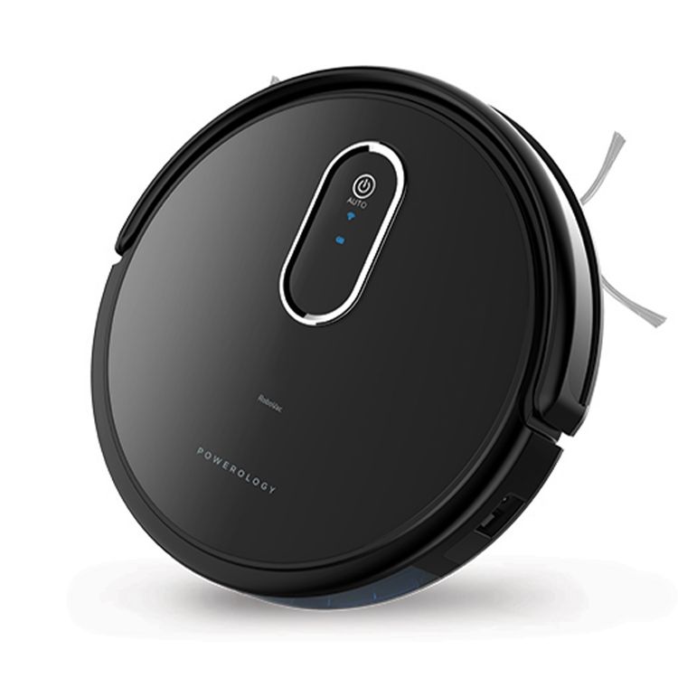 Powerology Smart Robot Vacuum Cleaner with Detection Sensors, 2000Pa Suction Power, 120 Minutes Working Time, Re-Washable HEPA Filter, Google Voice Assistant, 500mL Bin Capacity - Black