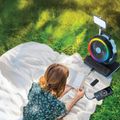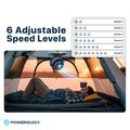 Powerology Ventopower Outdoor 40K Oscillating Fan with 6 Speed Levels, High Capacity Battery, Timer, Dynamic Mood Lighting, TF Card Playback, Oscillating Fan Head - Black