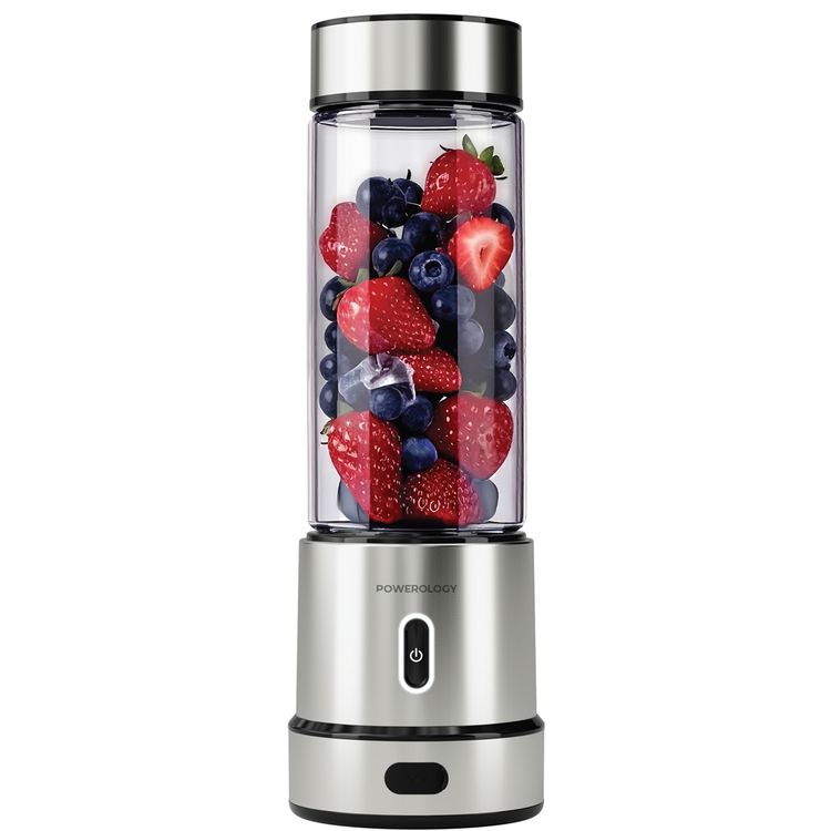 Powerology Vitromix Portable Blender with 12-Blade Design, 450mL Capacity, Stainless Steel Blades, 250W Motor Power, Glass Container, 3×2000mAh Battery, One-Touch Blending, 21000RPM Motor Speed, Powerful Ice Crusher - Silver