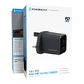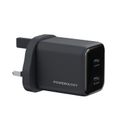 Powerology Volt-X 45W Dual USB-C Port GaN Wall Charger with Fast Charging Speed, USB-C Output Ports, Wide Compatibility, Compact Travel Size, Universal Protocol Support - Black