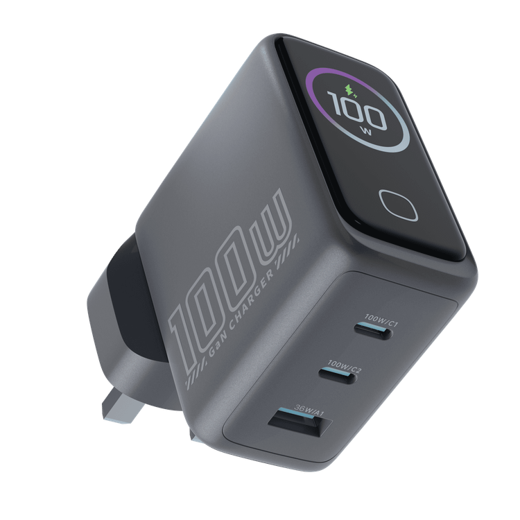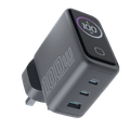 Powerology Voltflow 100W AVS GaN Wall Charger with Smart TFT Display, AI Temperature Control, QC 36W, Rapid Power Delivery, Over Current Protection, Natural Cooling System, High-Power Fast Charging, 25°C to 50°C Operating Temperature, 50/60 Hz Rated Frequency - Gray