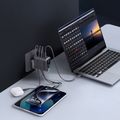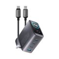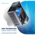 Powerology Voltflow 240W GaN 4 Ports Wall Charger with 1m | 3.2ft USB-C to USB-C Cable, PD 140W, Temperature Control, Smart TFT Display, Foldable UK Plug, High-Power Fast Charging, Simultaneous Charging, Intelligent Power Distribution - Black