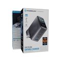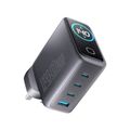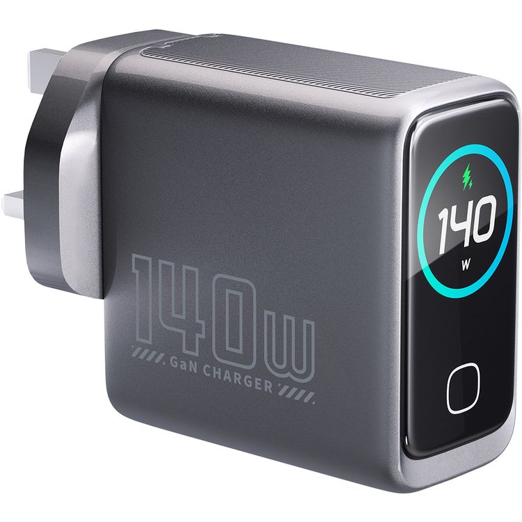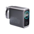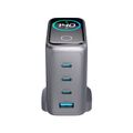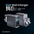 Powerology Voltflow GaN Wall Charger with PD 140W, Single USB-A & Triple USB-C Ports, Ai Temperature Control, Fast Charge Support, Multiple Device Compatibility, TFT Smart Display Interface - Black