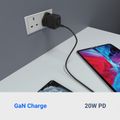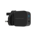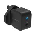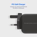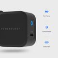 Powerology Ultra-Compact GaN Charger with 20W Power Delivery, UK 3-Pin Plug, Built-in Safeguards, USB-C Fast Charging, 0%-60% Charge in 35 Minutes - Black
