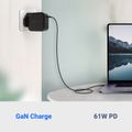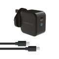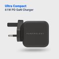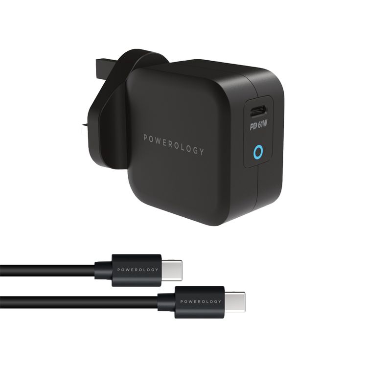 Powerology Ultra-Compact PD Charger with USB-C to USB-C Cable, 61W Power Delivery, 100% Charge in 2 Hours, UK 3-Pin Plug, Built-in Safeguards, Advanced GaN Technology - Black