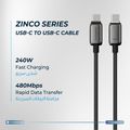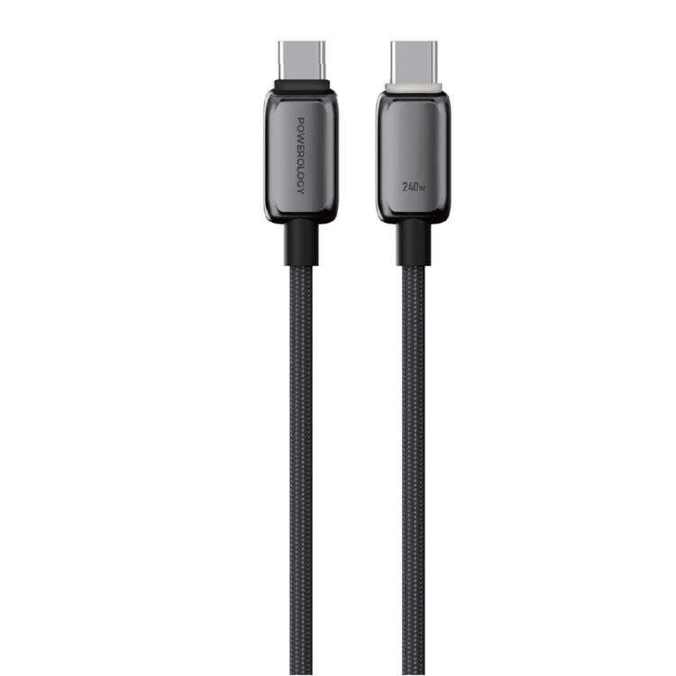 Powerology Zinco Series USB-C to USB-C Cable with PD 240W, High-Speed Charging, 1m Cable Length, Nylon Braided & Zinc Alloy Material, 480Mbps Data Transfer Speed - Gray