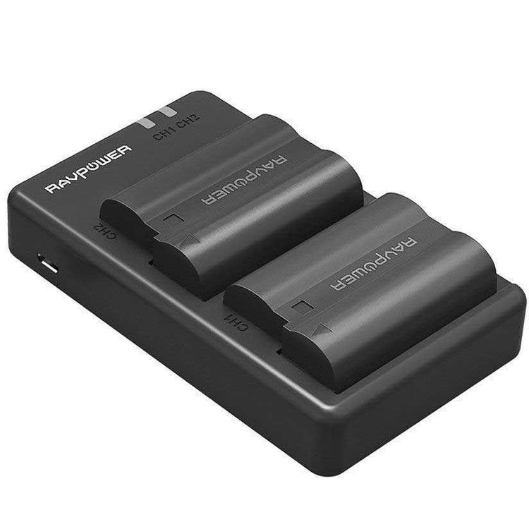 RAVPower EN-EL15 EN EL15A Battery Charger Set Compatible for Nikon D750, D7500, D850, D800, D7200, D500, D610, D600 (2-Pack, Micro USB Input Charger, 2100mAh / 14.7W Battery
