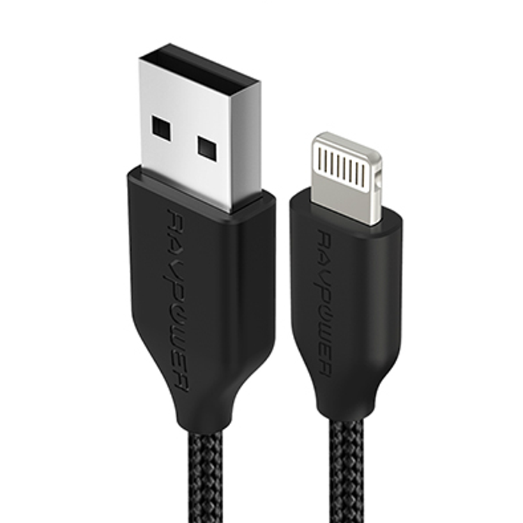 RAVPower Kevlar Braided Cable 1ft Compatible for Lightning Devices, Fast Charging Connector, Adjustable Strap, Durable Charge and Sync Cord - Black