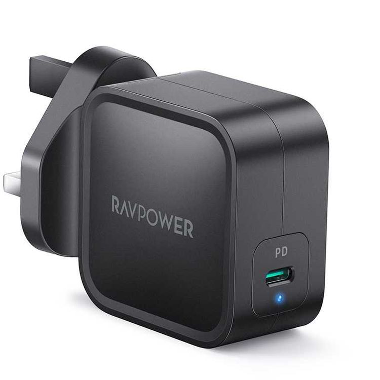 RAVPower PD Pioneer GaN Wall Charger 61W UK with Type-C Port & Multiple Protection - Slim Design Portable Travel Adapter - Power Delivery 3.0 - Fast Charging Charger - Black