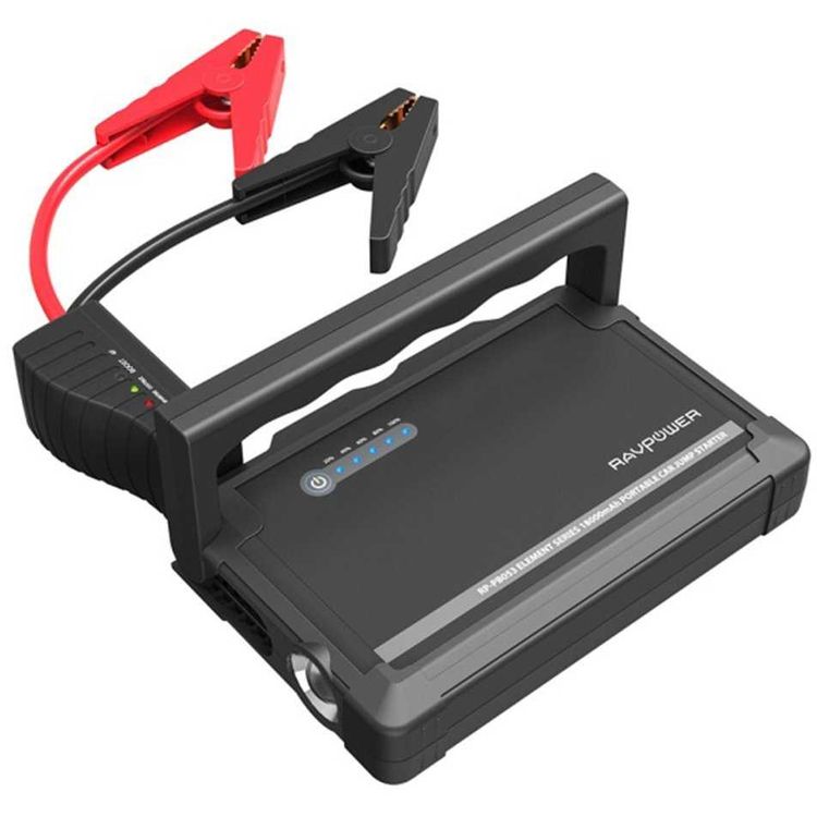 RAVPower Portable Element Car Jump Starter 600A UK 18000mAh Power Bank with Handle - Built-in Intelligent Protector - Portable Car Cigarette Lighter with LED Flashlight - Black