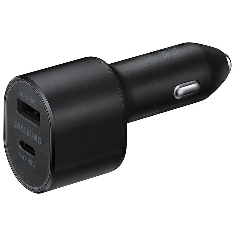 Samsung Dual Port Car Charger with Type-C to Type-C Cable, Super Fast Charging, 1m Cable Length, USB-A & USB-C Ports, 15W & 45W Power - Black