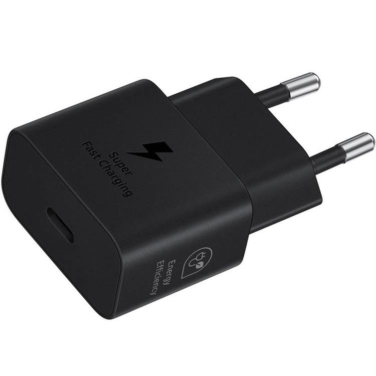 Samsung Travel Adapter 25 W 2 pin with USB Type-C to Type-C Cable, Fast Charge Support, 25 W Total Output Power - White 100-240 V Input Voltage, 5 V Output Voltage (Max, Normal Charge), 9 V Output Voltage (Max, Fast Charge) PDO - Black