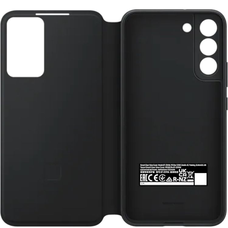 Samsung ZS906CBE-BK S22+ Smart Clear View Cover A clear strip along the side of the cover lets your phone peek out. It also adds a sleek touch to the design of the case - Black