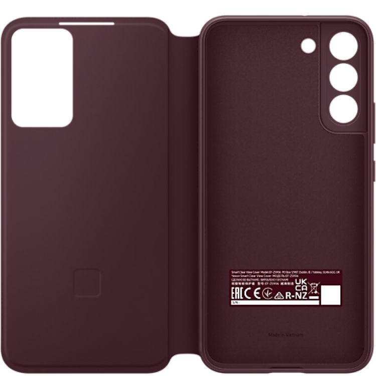 Samsung ZS906CEEGWW S22+ Smart Clear View Cover A clear strip along the side of the cover lets your phone peek out. It also adds a sleek touch to the design of the case - Burgundy