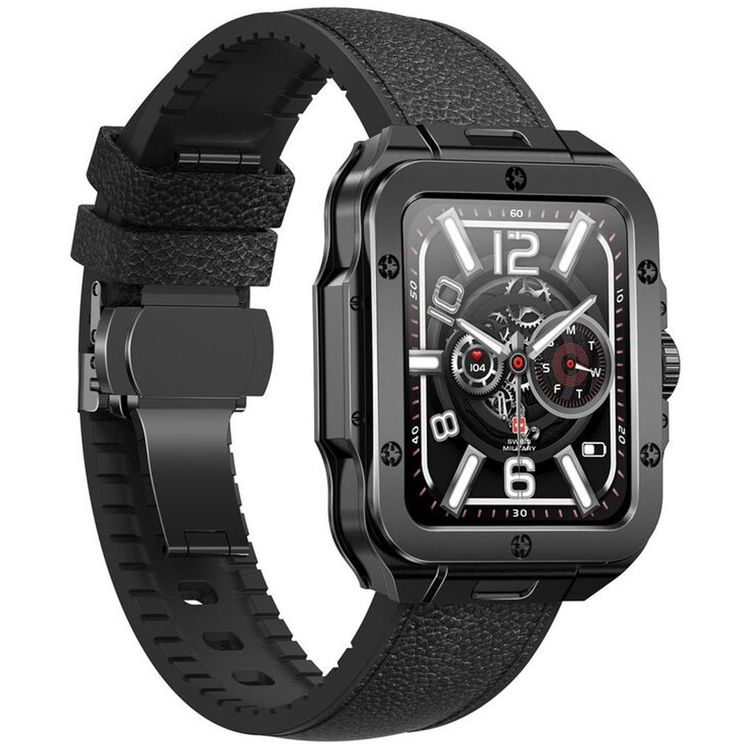 Swiss Military Alps 2, 1.85" HD Display, 4GB Built-in Memory, Workout Detection, Blood Pressure & Oxygen Level Monitoring, Make and Receive Calls - Gunmetal Frame and Black Leather Strap