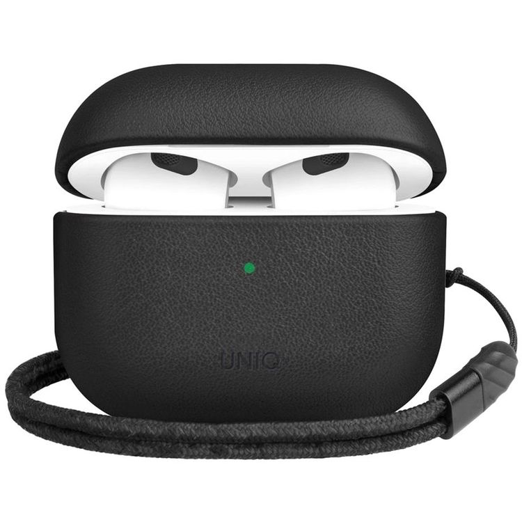 Uniq Terra Geniune Leather Airpod Case with Braided Wrist Strap, Wired and Wireless Charging, Inner Microfiber Lining - Dallas Black