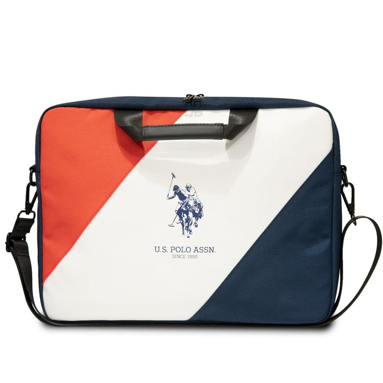 U.S. Polo Assn 15" Computer Bag with High-Quality Material, Water Resistant, Adjustable Shoulder Strap, Carrying Handles, Multiple Pockets - Red/White/Navy
