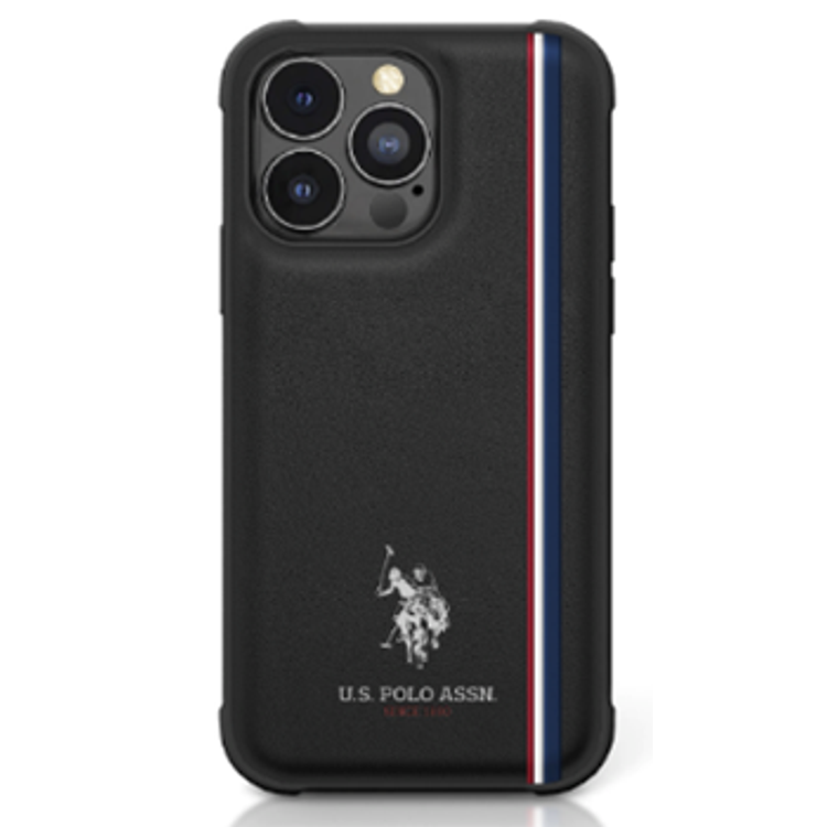 U.S. Polo Assn. iPhone 15 Pro Max For PU Leather Case with DH Tricolor Line - Black