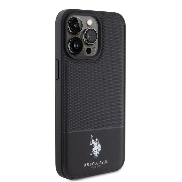 U.S.Polo Assn. PU Leather Mesh Pattern DH Case for iPhone 15 Series - Black - iPhone 15 Pro Max