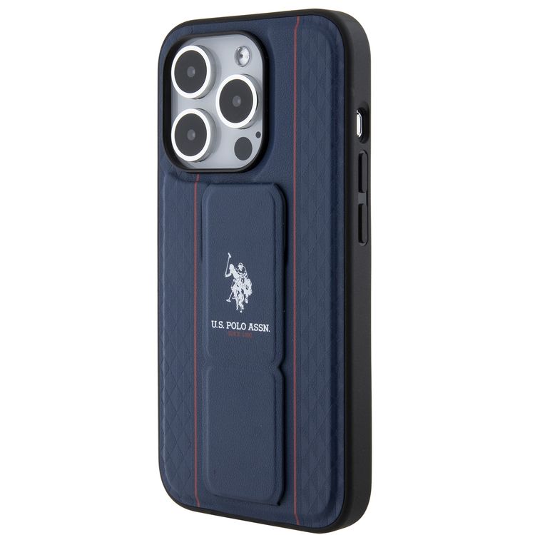U.S.Polo Assn. PU Leather Textured Pattern Grip Stand Case for iPhone 15 Series - Navy - iPhone 15 Pro Max