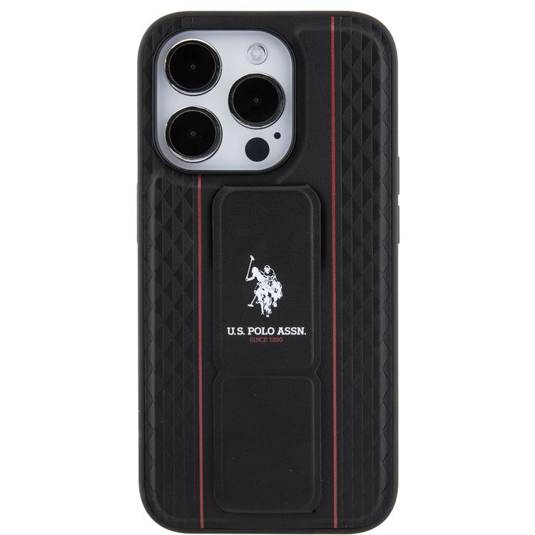 U.S.Polo Assn. PU Leather Textured Pattern Grip Stand Case for iPhone 15 Series - Black - iPhone 15 Pro Max