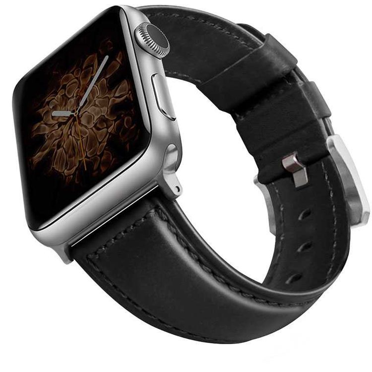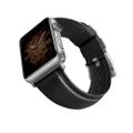 Viva Madrid Montre Cordovan Genuine Leather Strap Compatible for Apple Watch 42/44MM - Sweat Resistant & Lasting Durability - Comfortable Replacement Wrist Band - Black/Silver