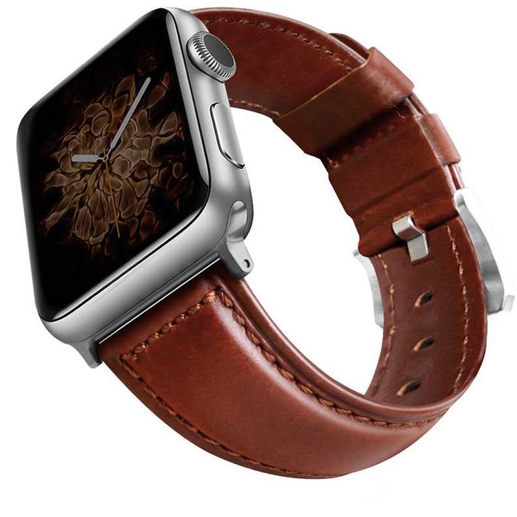 Viva Madrid Montre Cordovan Genuine Leather Strap Compatible for Apple Watch 42/44MM - Sweat Resistant & Lasting Durability - Comfortable Replacement Wrist Band - Brown/Silver
