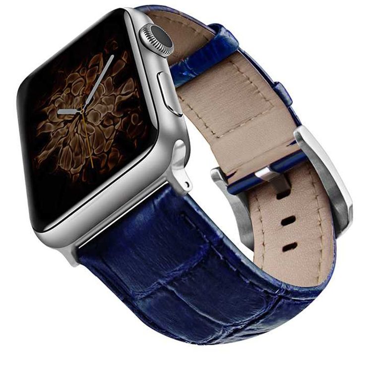 Viva Madrid Montre Crox Leather Watch Strap for Apple Watch Band 42/44MM - Blue/Silver