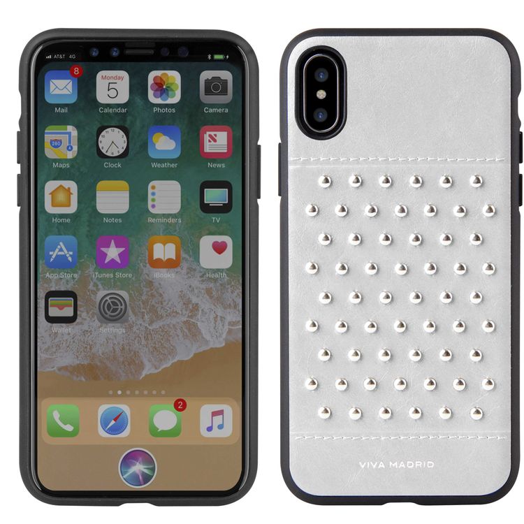 Viva Madrid Tacho Back Case with Integrated Nano SIM Card & Ejector Pin Slot Compatible for iPhone X - Drop Protection Cover Embedded with Sparkling Studs - Anti-Scratch - White