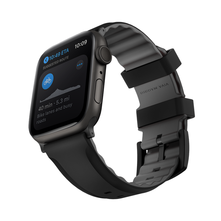 Viva Madrid Venturx Silicone Sport Watch Strap Compatible for Apple Watch 42/44/45MM | Adjustable Replacement Wrist Watch Band - Midnight Black