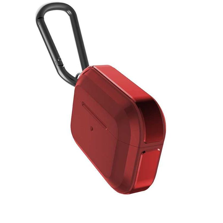 X-Doria Defense Trek Aluminum Bumper Case with Anti-Lost Carabiner & Loop Compatible for AirPods Pro - Sleek Design Cover - 360 Degree Protection - Charging Light Visible - Red