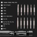 - MAGNETIC BIT STORAGE AND SLOT: All 12 pieces of double-end bits are stored in the magnetic box and hidden within the handle of the screwdriver. The magnetic slot will be put in place with a "click" when attaching the bits and simply pull it out when changing the bits. Convenient to use, store and you won't be lost the bits again.