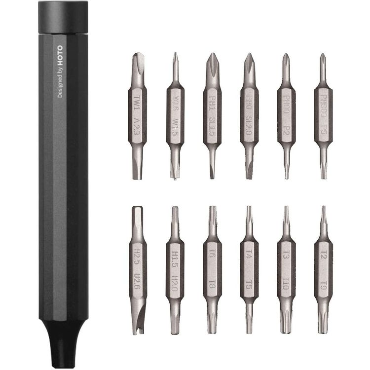 - 24-IN-1 BITS SET MEET YOUR DAILY REPAIR NEEDS: HOTO mini screwdriver set included the most common use size for electronics, glasses, bracelets, and as well as larger appliances, which completely fulfilled your need for precise & accurate work. Size included: Philips(PH000/PH00/PH0/PH1), Flat blade(SL1.5/SL2.0), Hex(H1.5/H2.0/H2.5), Torx bit set-without hole(T2/T3/T4/T5/T6/T8/T9/T10), U-shaped(U2.6), Y-shaped(Y0.6), W-shaped(W1.5), Tri-Wing(TW1), Triangular(▲2.3), Pentagon(P2/P5).